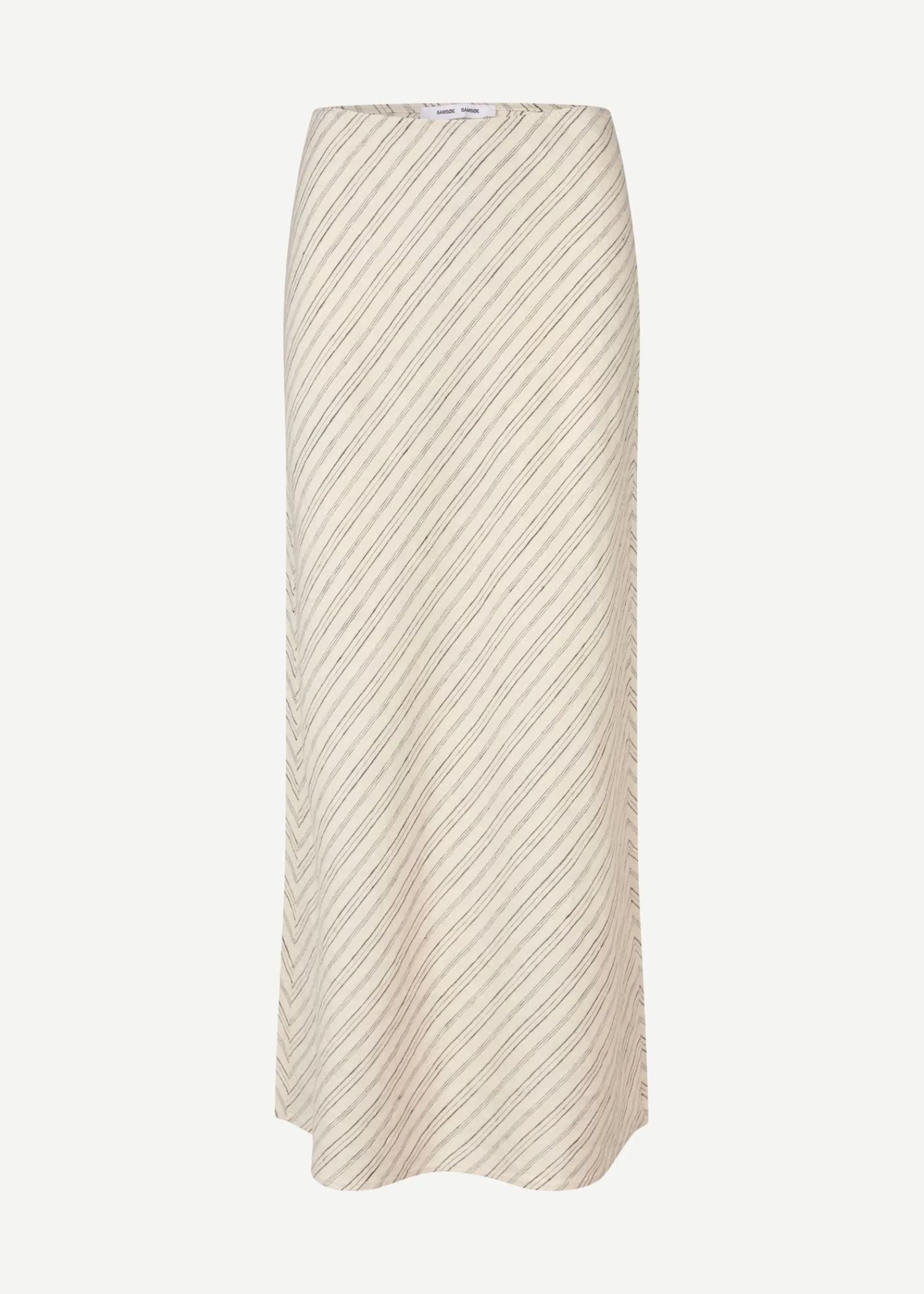 Off White stribet maxinederdel fra Samsøe med mellemhøj talje og slank pasform. Skjult lynlås- og hægtelukning. Elastisk linning. Hovedmaterialet er fremstillet af 100 % hør.