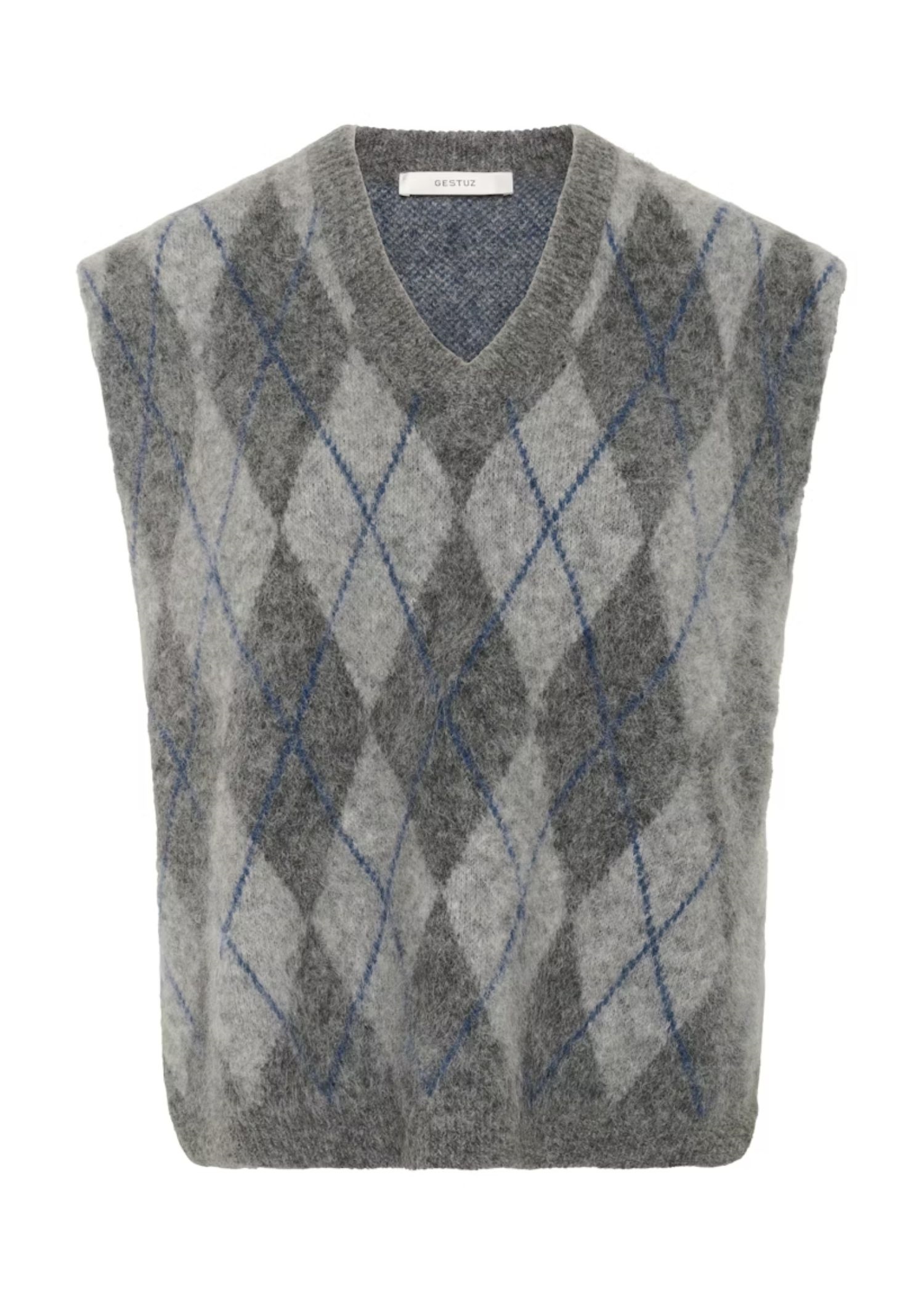 Harlequin ternet strik vest i grålige nuancer fra Gestuz.