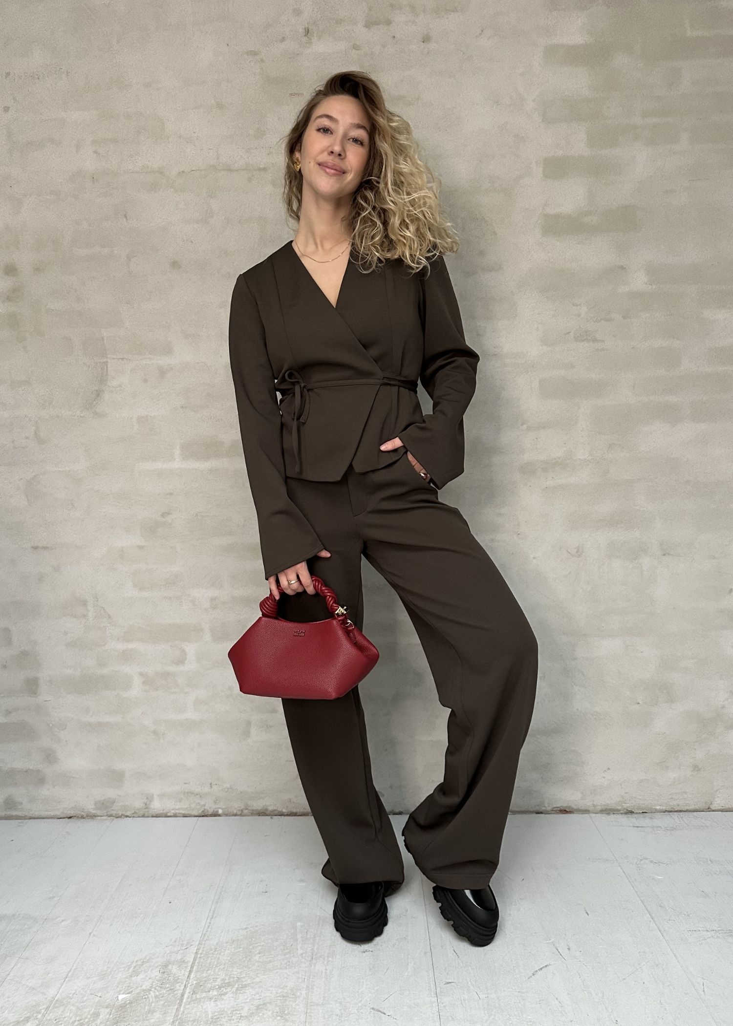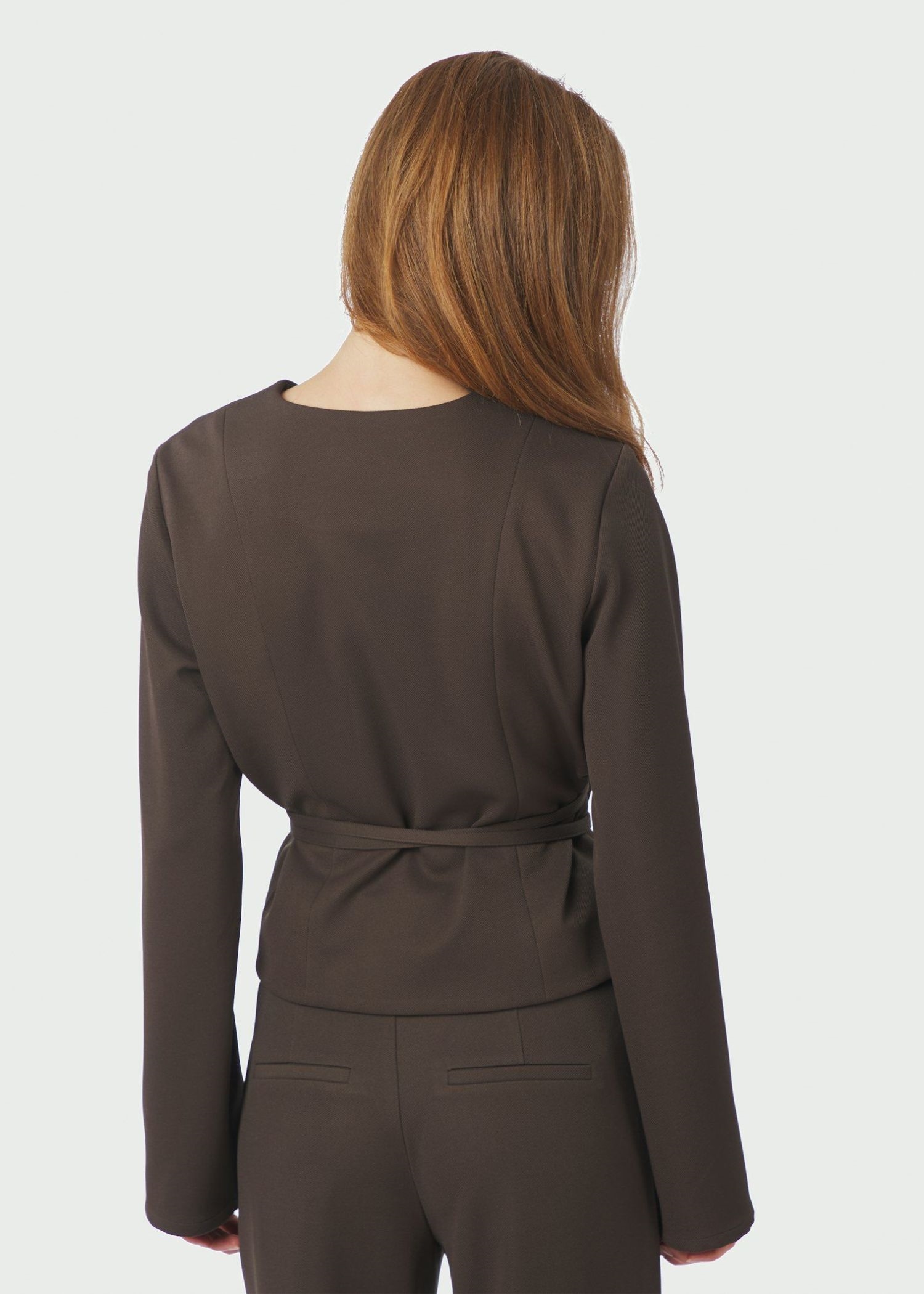 Mørkebrun slå om bluse fra Neo Noir i en blød let kraftig polyesterkvalitet.
