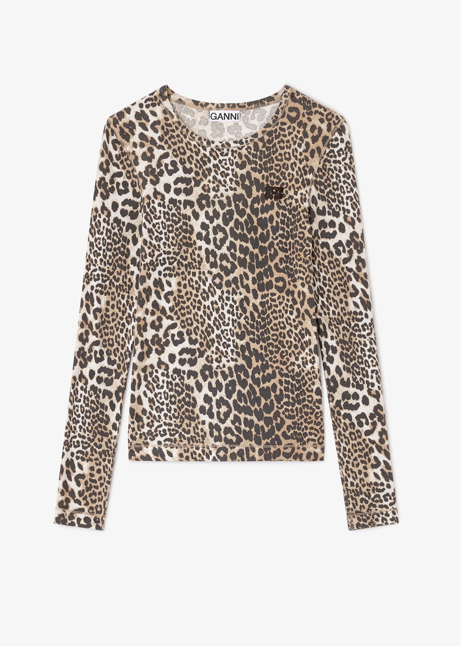 Soft cotton rib leo long sleeve bluse Leopard T4367 Ganni
