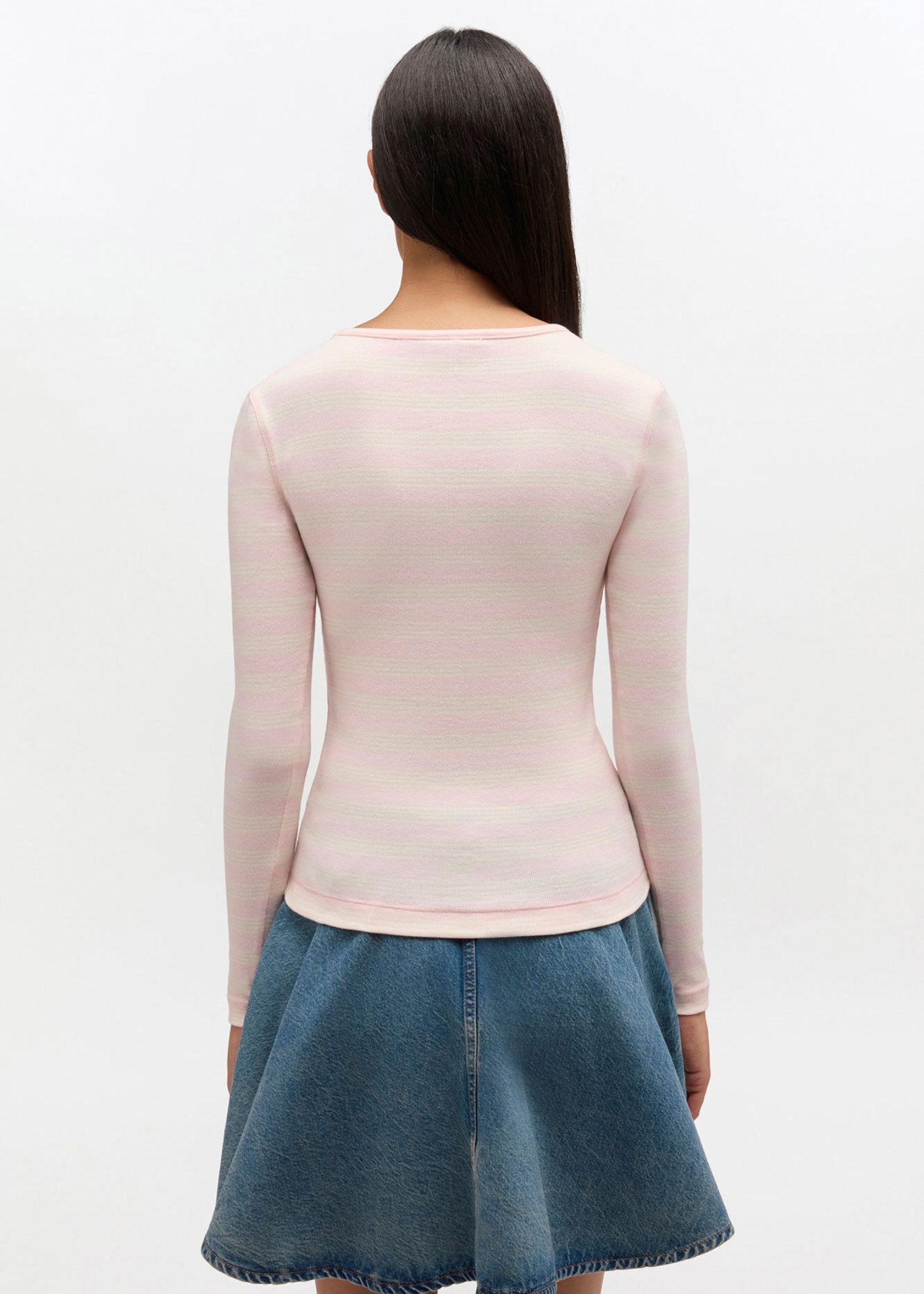 Soft cotton stripe rib longsleeve bluse Chalk Pink A1050066 Ganni