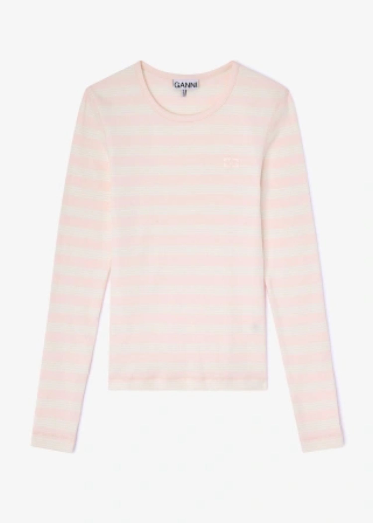 Soft cotton stripe rib longsleeve bluse Chalk Pink A1050066 Ganni Soft cotton stripe rib longsleeve bluse Chalk Pink A1050066 Ganni
