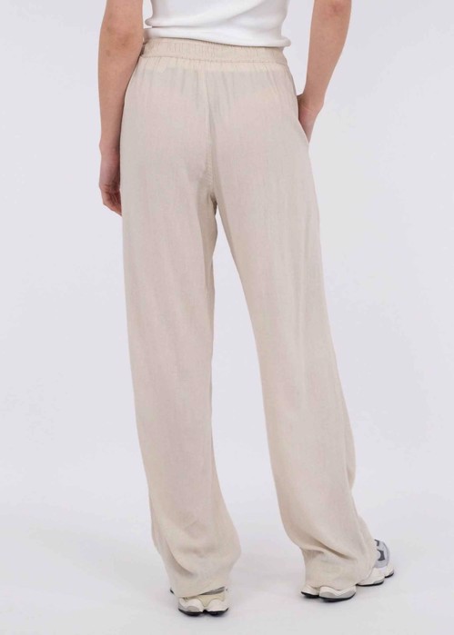 Beige farvet bukser fra Neo Noir i en blød viskose/hør blanding. Bukserne har elastik og bindebånd i taljen, samt sidelommer.