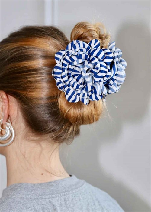 Håndlavet blå stribet rose hårklemme fra Pico - en ny chic hårklemme til at pifte dit outfit op.