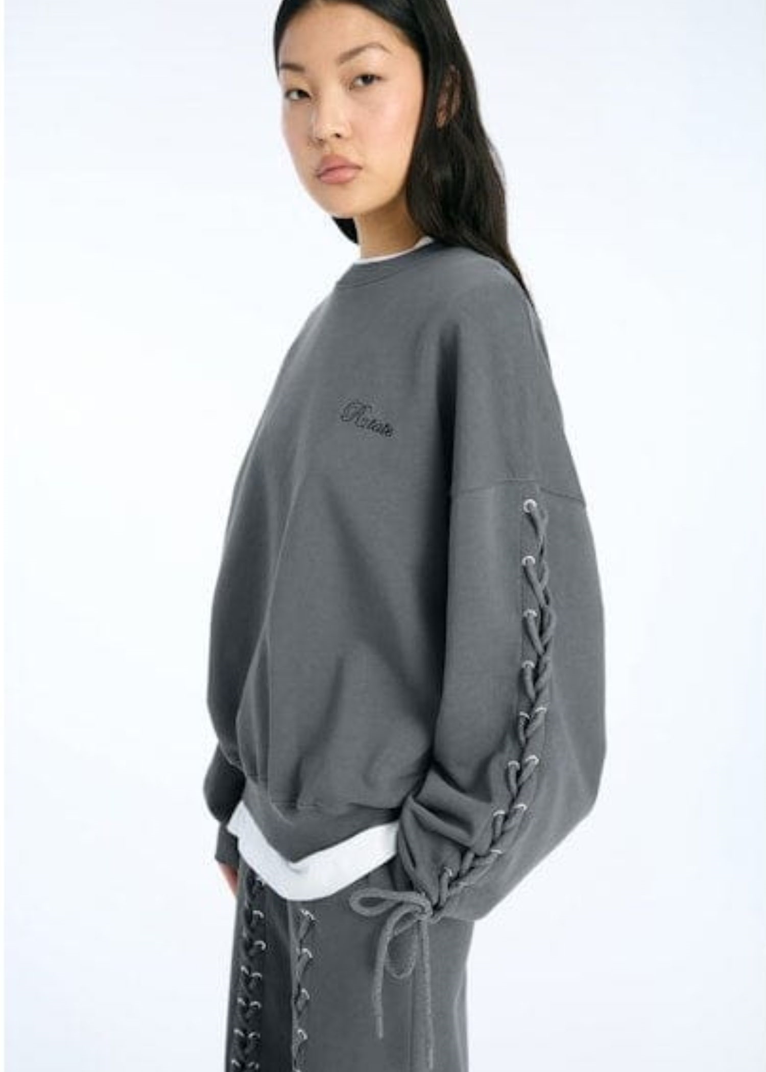 Sui lacing crewneck sweat Grey Pinstripe ROTATE By Birger Christensen
