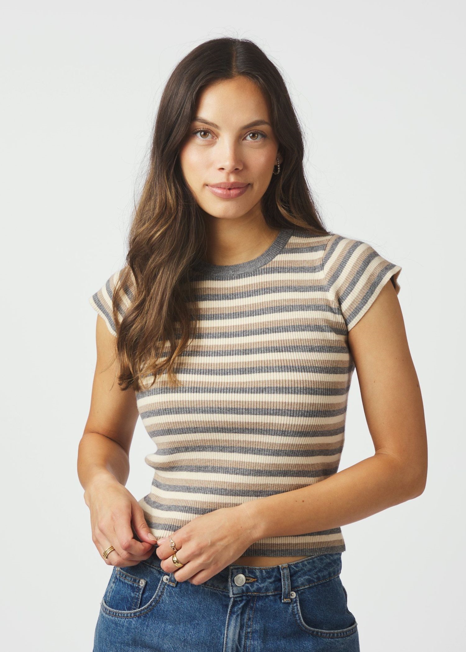 Tirra simple stripe knit bluse Grey Neo Noir