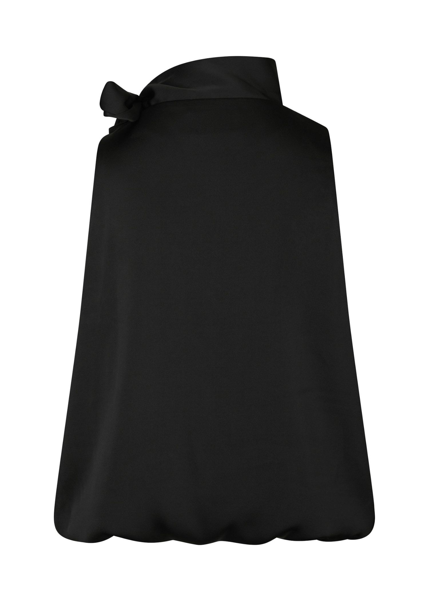 Sort top fra Neo Noir i en glat let shiny kvalitet med høj krave, knaplukning ved den ene skulder, samt pose effekt forneden.