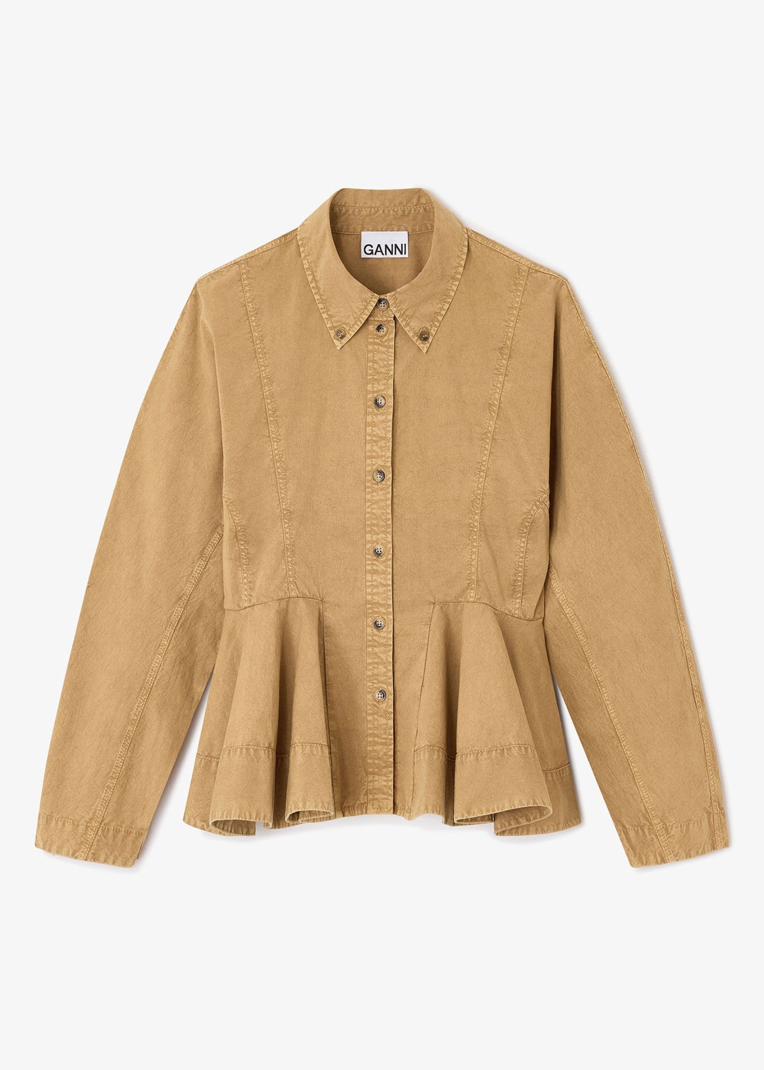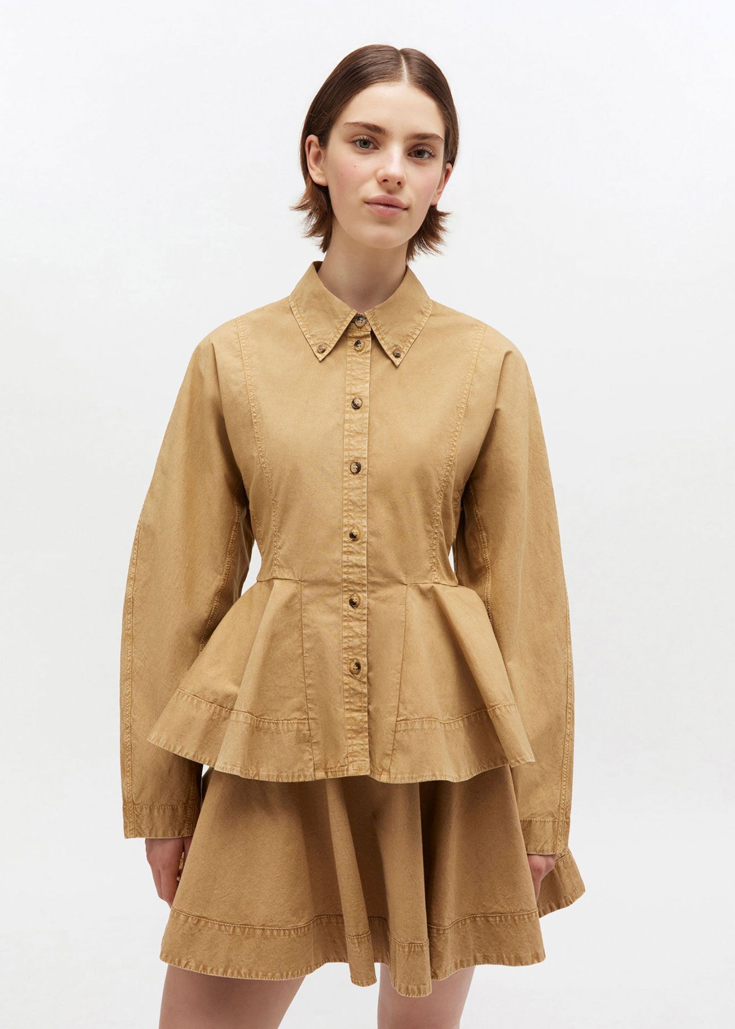 Washed stretch cotton peplum skjorte Lark W0827 Ganni